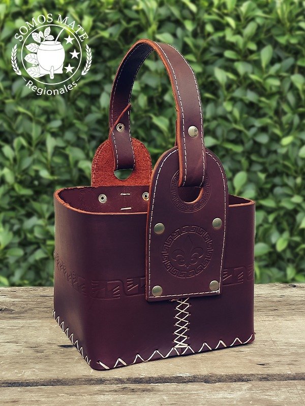 Nuestra canasta matera está elaborada en cuero grueso, con costuras reforzadas y un diseño artesanal que la hace única. Pensada para que lleves tu equipo completo de mate de manera cómoda, prolija y con mucha onda.