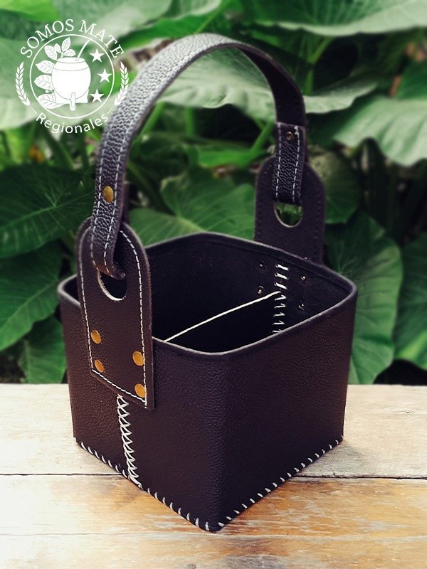 Esta canasta matera de eco cuero resistente es ideal para llevar tu equipo completo de mate a donde vayas. Liviana, fácil de limpiar y con un diseño que queda bien en cualquier ocasión. Perfecta para la oficina, la facu, el parque o una escapada.