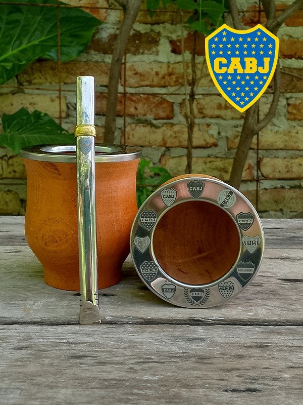 Mate de Algarrobo con Virola de Acero diseño BOCA JUNIORS