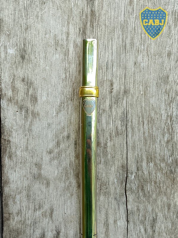 • El mate incluye bombilla pico curva de acero inoxidable chata con dije de bronce grabado con escudo de BOCA JUNIORS a color.