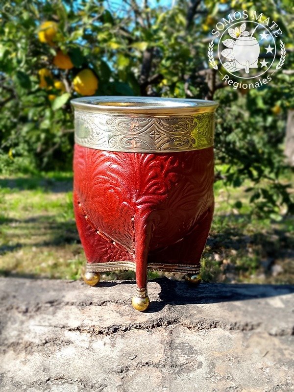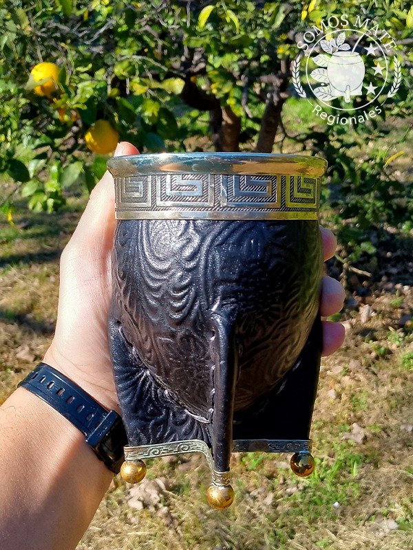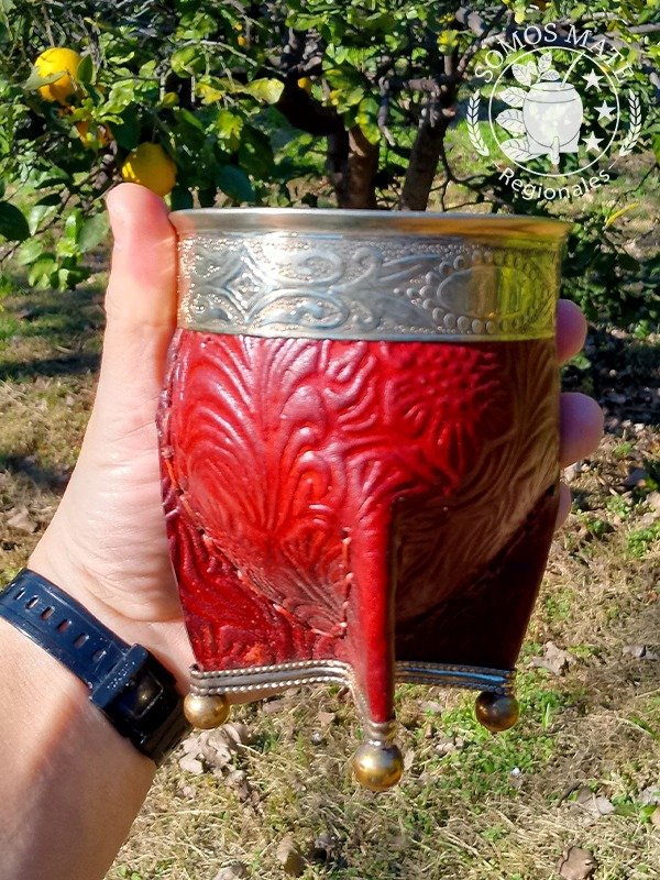 Una verdadera joya artesanal, este mate combina la nobleza del cuero vacuno con el trabajo minucioso de los metales tradicionales. Ideal para quienes buscan elegancia, durabilidad y la calidez de lo hecho a mano.