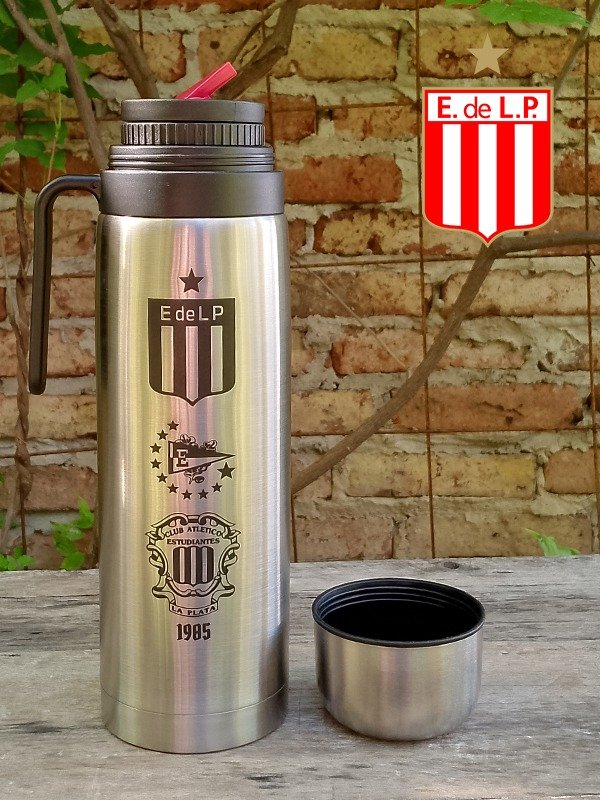 Termo Media Manija de Acero Inoxidable NEGRO (1L) diseño ESTUDIANTES