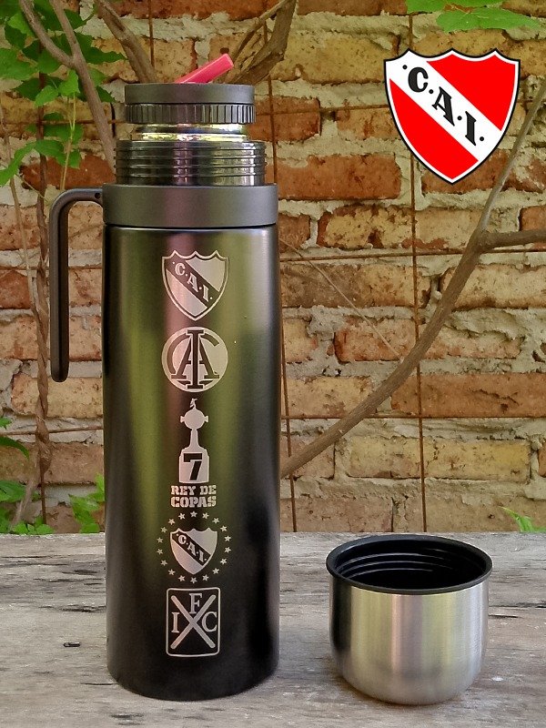 Termo Media Manija de Acero Inoxidable NEGRO (1L) diseño INDEPENDIENTE